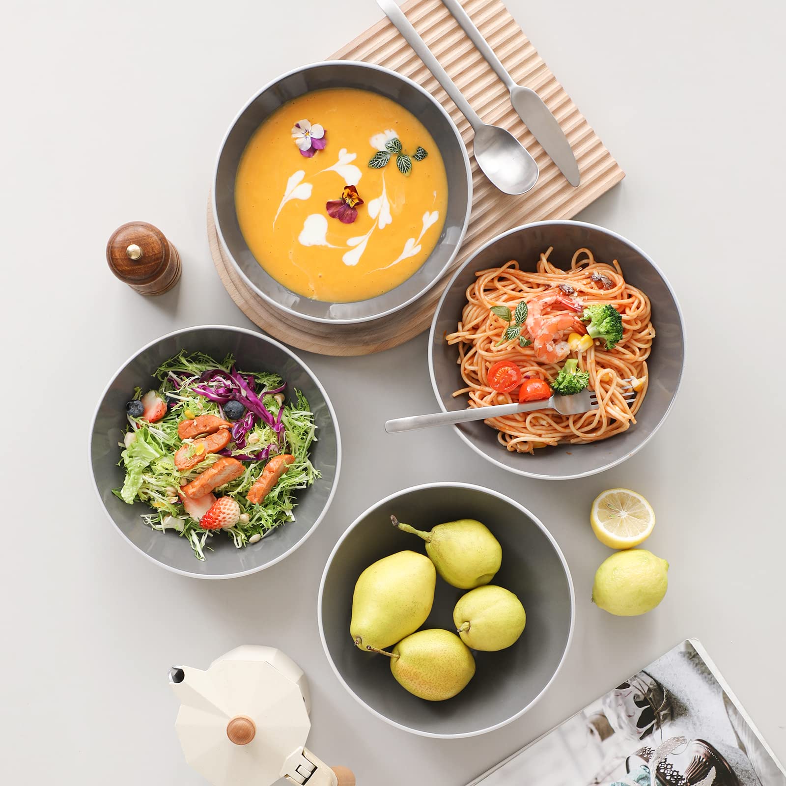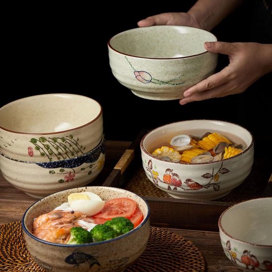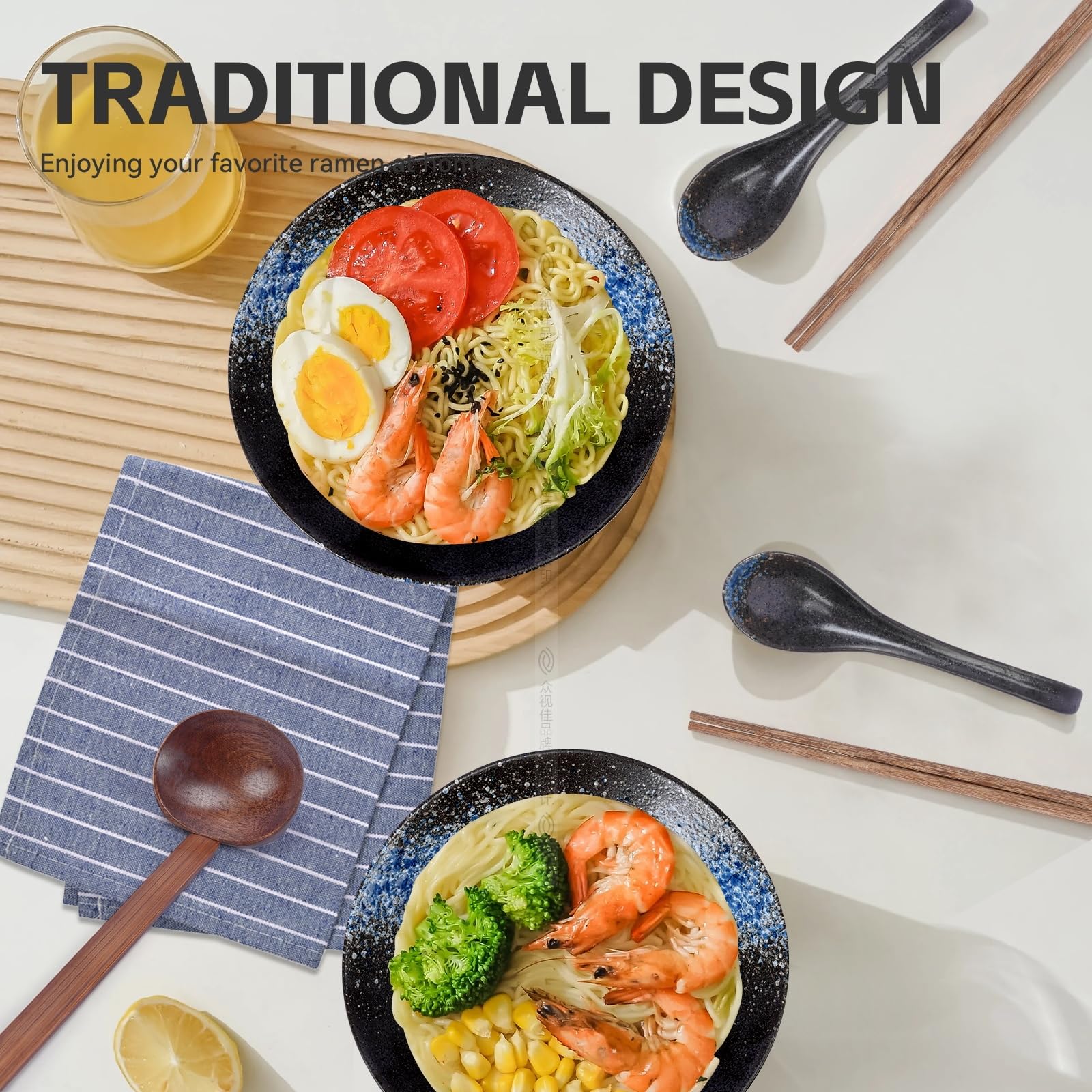 Ramen Bowl Keramiek Set - 2×1000ml Kommen + Bestek | Japans Porselein | Magnetron & Vaatwasserbestendig | Cadeauverpakking